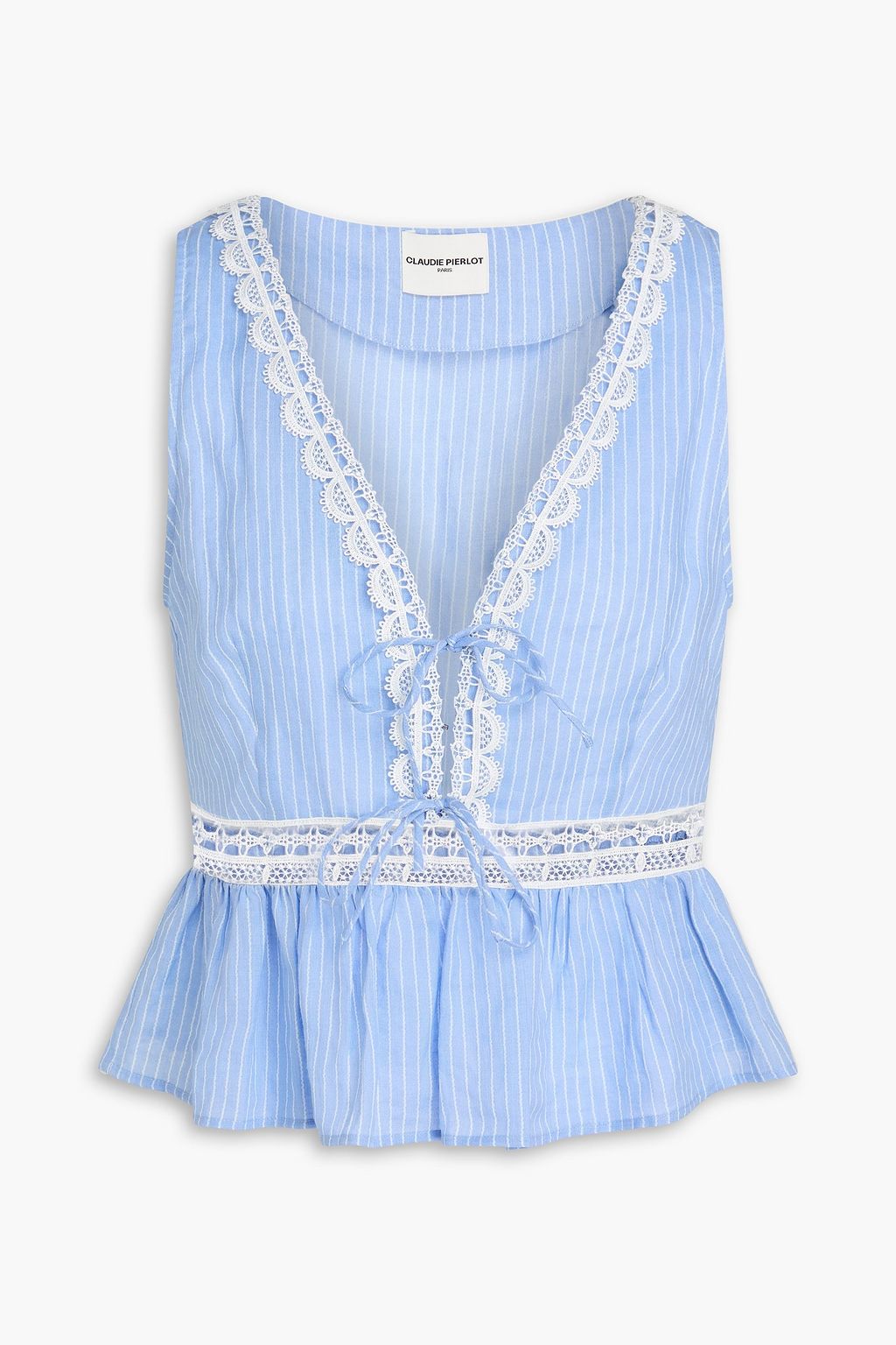 CLAUDIE PIERLOT بلوزة من قماش راميه مخطط بحواف من الدانتيل وقماش المكراميه