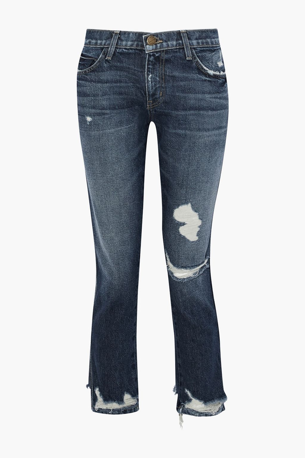 CURRENT/ELLIOTT Distressed mid-rise straight-leg jeans
