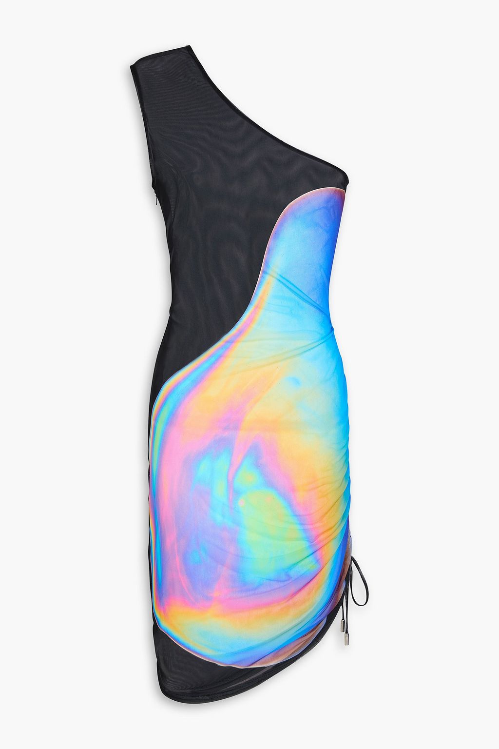 DAVID KOMA فستان قصير بكتف واحد من الشبك المطاط مزين بطبعات