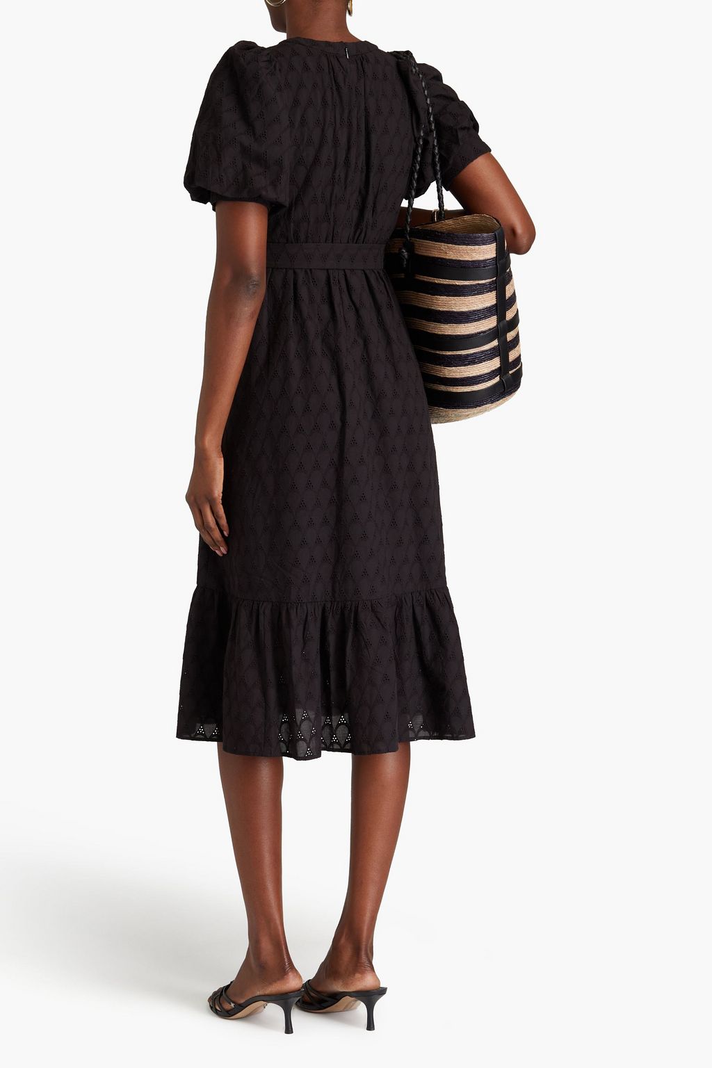 DIANE VON FURSTENBERG فستان متوسط الطول "بولينا" من القطن بتطريز إنجليزي مزوّد بحزام