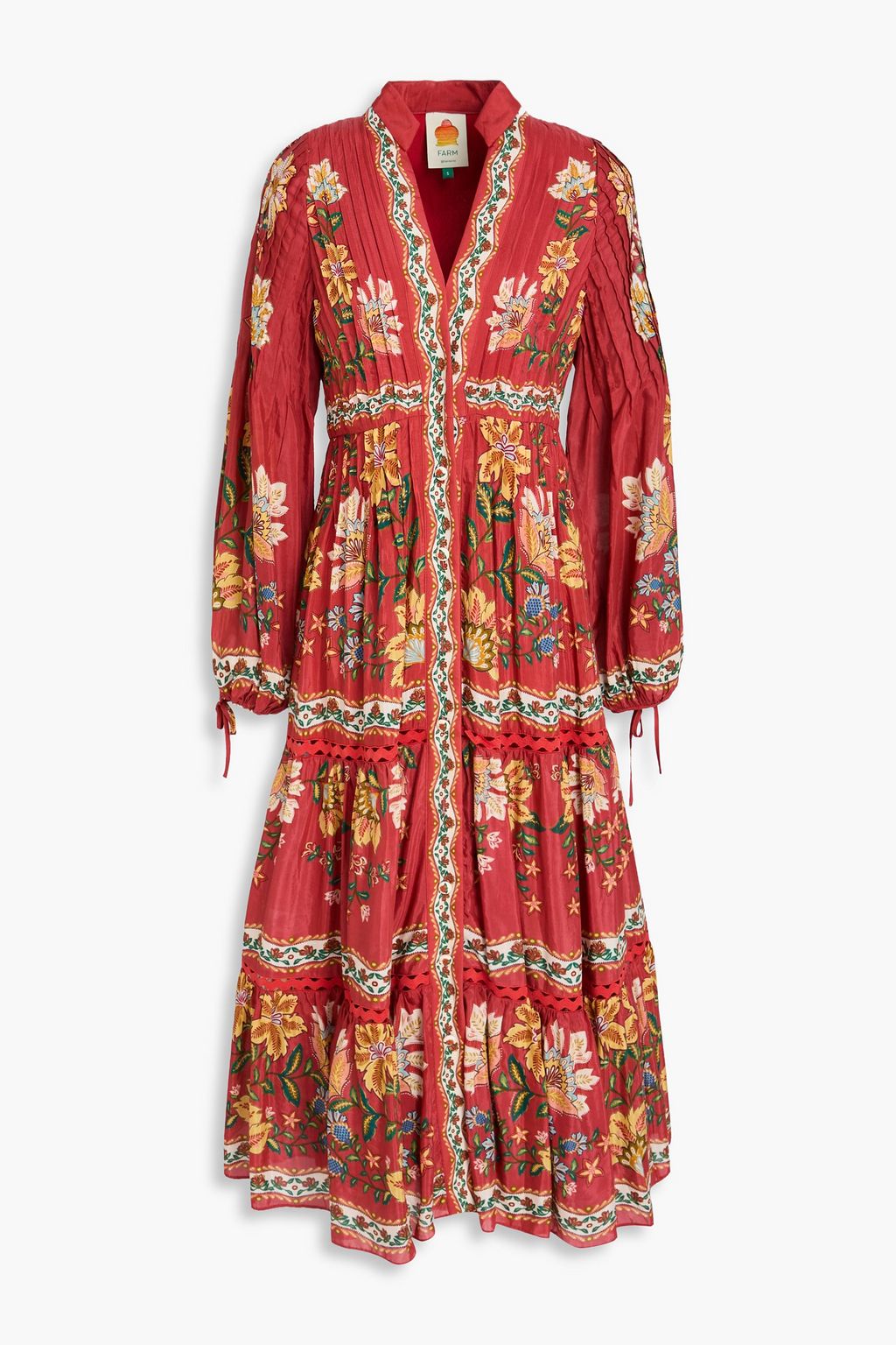 FARM RIO فستان متوسط الطول بثنيات رفيعة من مزيج من القطن بطبقات متدرجة بطبعة الأزهار