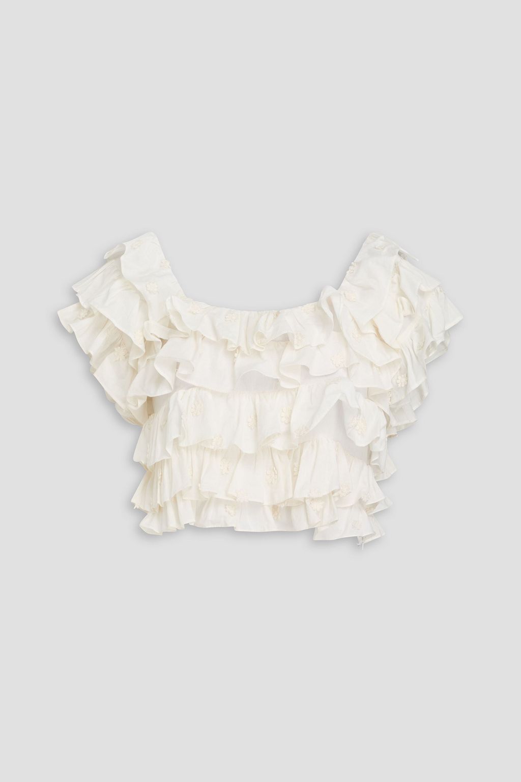 FARM RIO Cropped ruffled cotton-mousseliene top