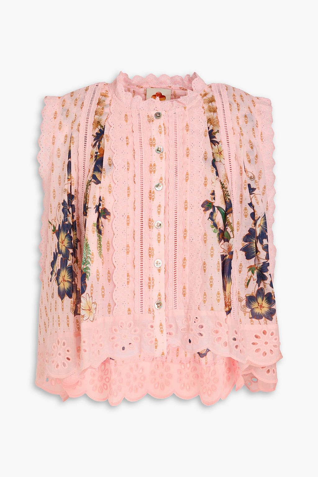 FARM RIO قميص من القطن وقماش رقيق بتطريز إنجليزي مزين بطبعة الأزهار