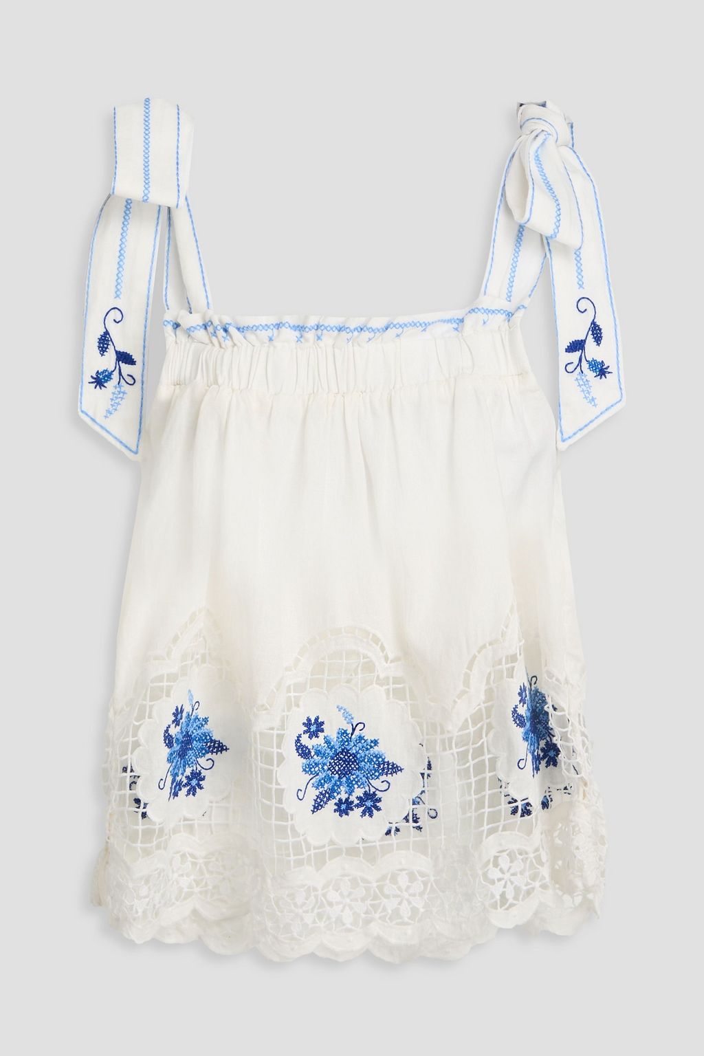 FARM RIO Embroidered linen-blend top