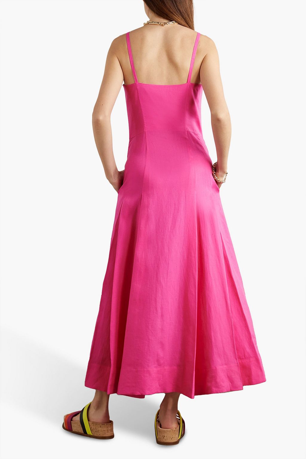 GABRIELA HEARST فستان متوسط الطول “مارغريت” من الكتان بكسرات