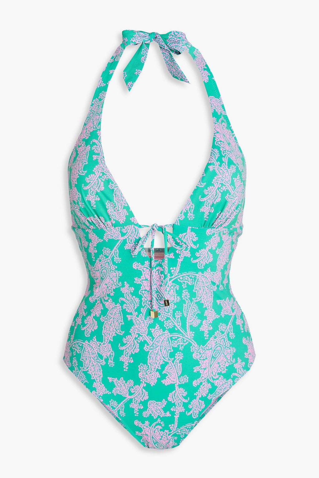 HEIDI KLEIN لباس سباحة بياقة هالتر الدائرية بطبعات مزين بربطة
