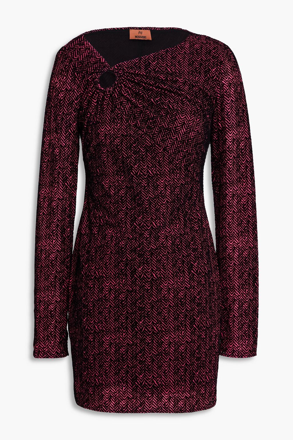 MISSONI فستان قصير من المخمل ديفوريه بنقشة هيرنج بون مزيّن بحلقات