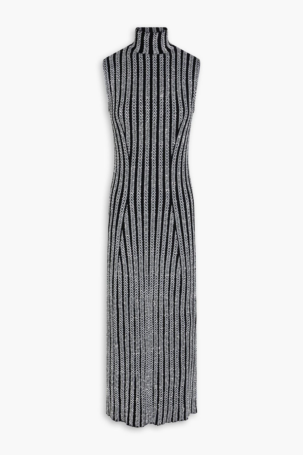 MISSONI فستان متوسط الطول من نسيج محبوك بنمط مضلّع مزيّن بالترتر