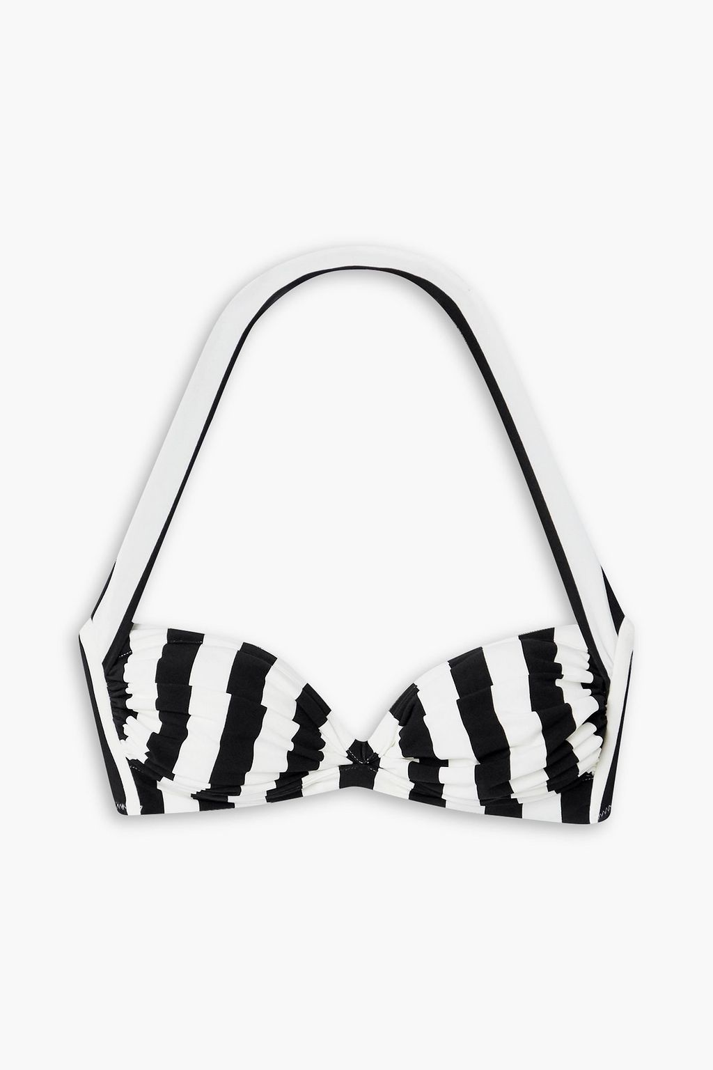 NORMA KAMALI توب بيكيني «بيل» بياقة هالتر الدائرية بتصميم مخطط وتأثير مزموم