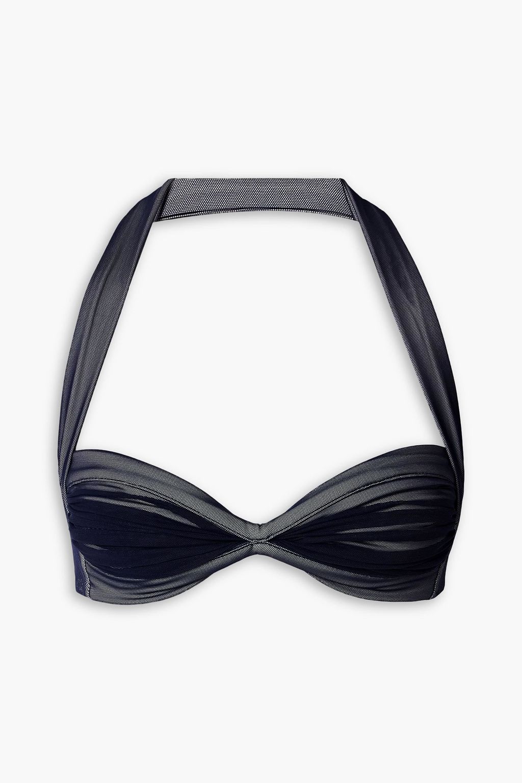 NORMA KAMALI قطعة بيكيني علوية Bill بياقة هالتر الدائرية من نسيج شبكي مزموم