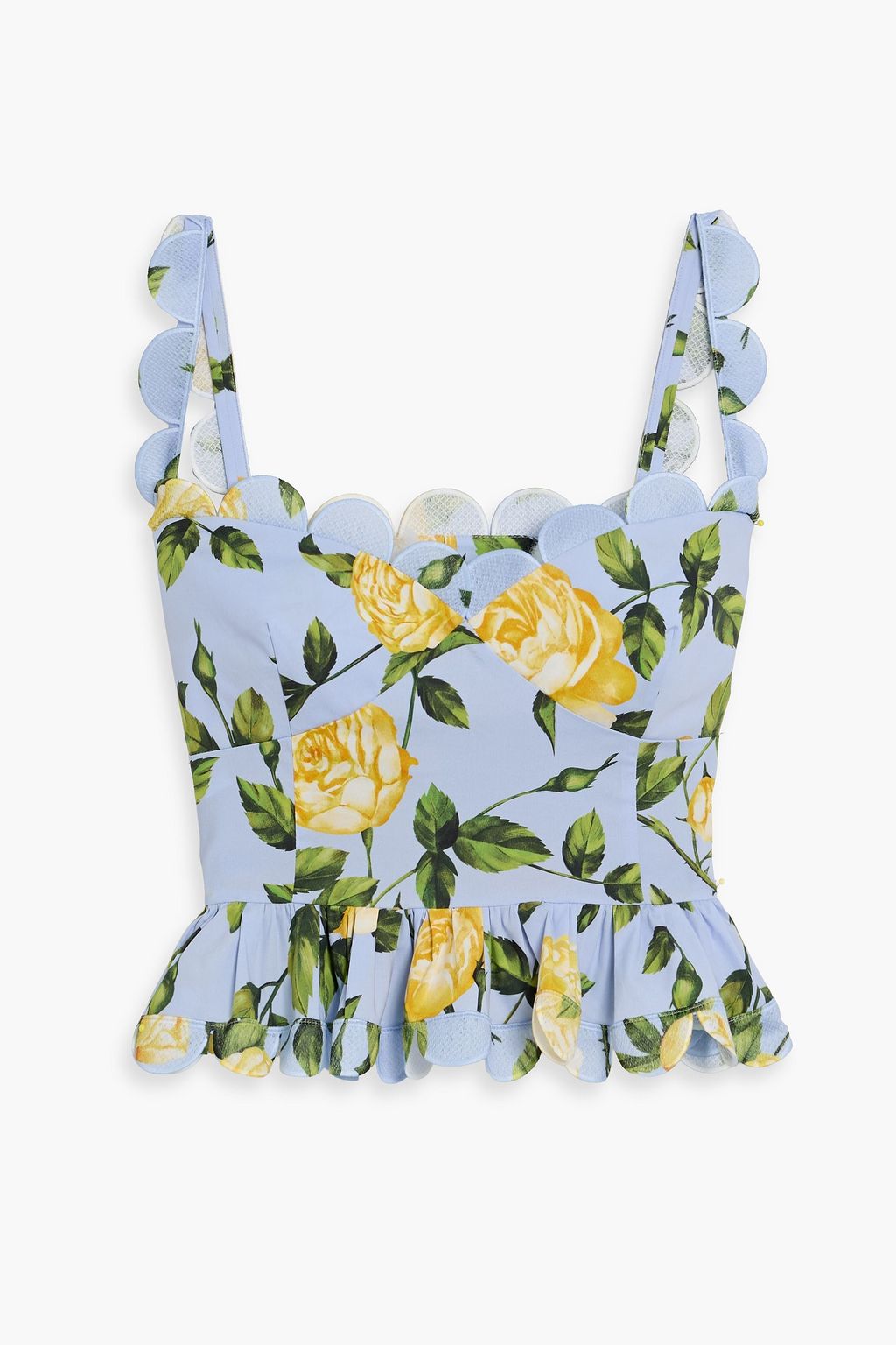 OSCAR DE LA RENTA بلوزة قصيرة من البوبلين ومزيج من قطن بكشكشة عند الخصر وبطبعة الأزهار