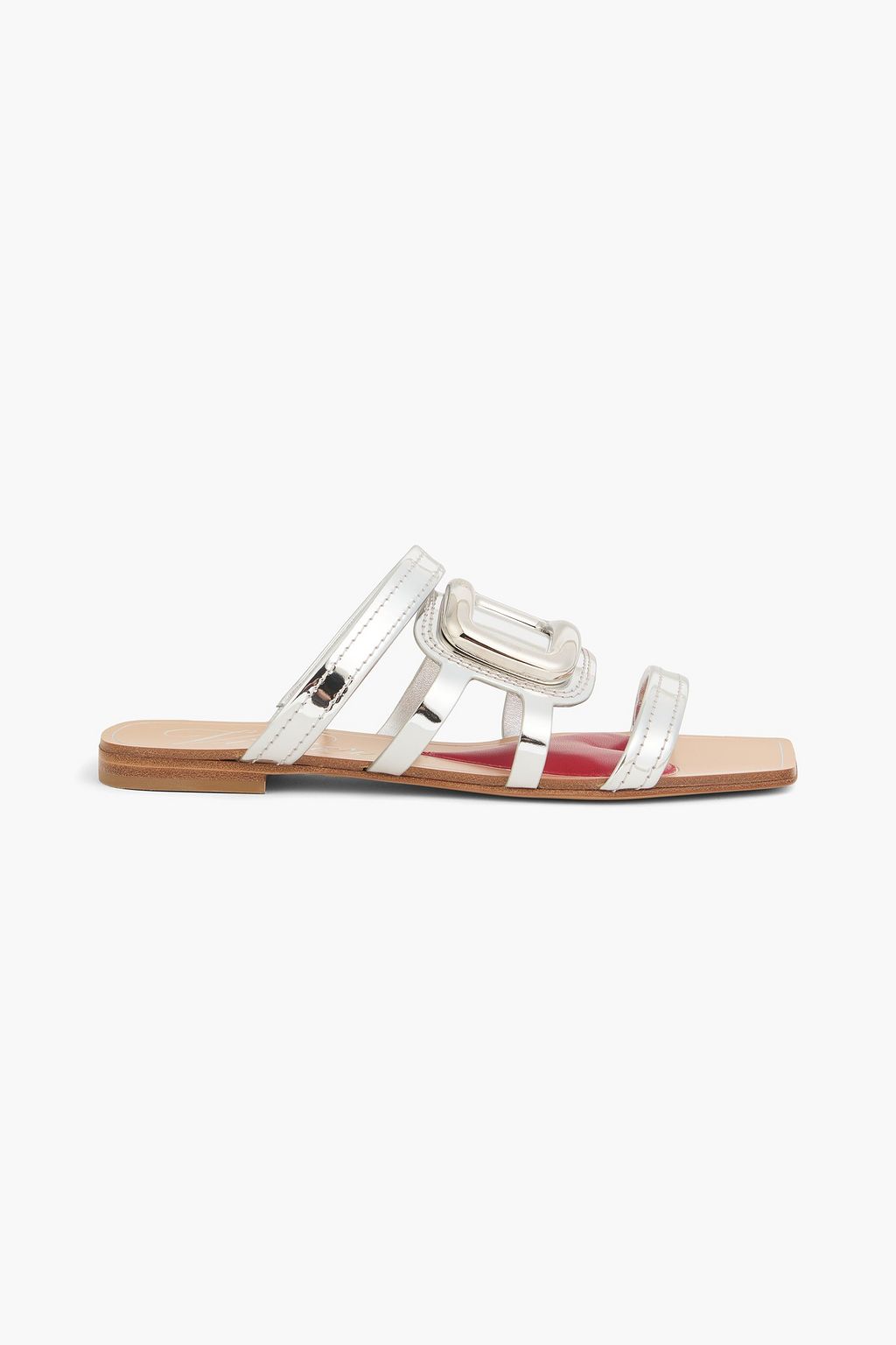 ROGER VIVIER صندل من الجلد بلون معدني بتصميم مزركش