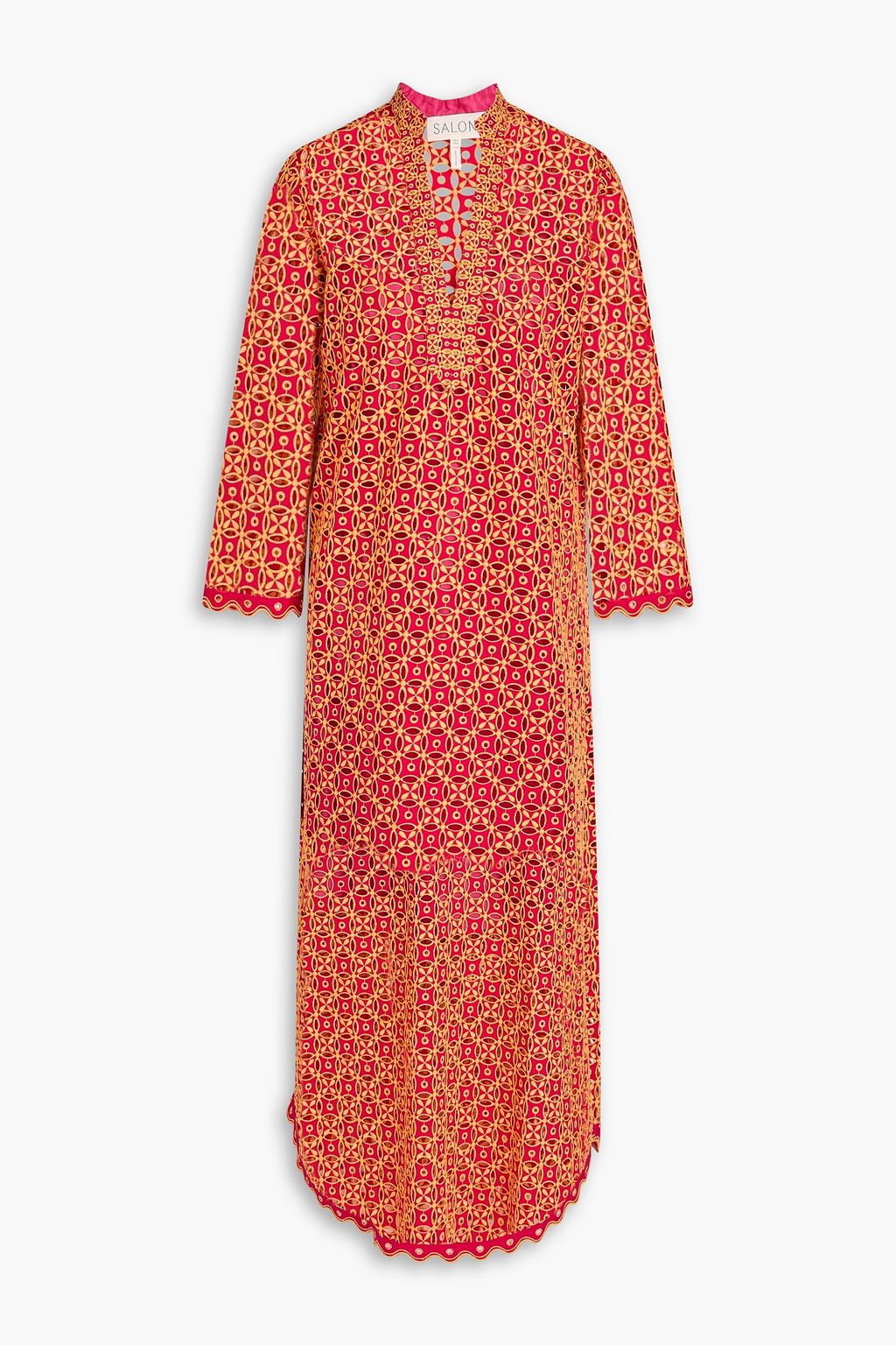 SALONI فستان سوني كورتا متوسط الطول من القطن بتطريز إنجليزي