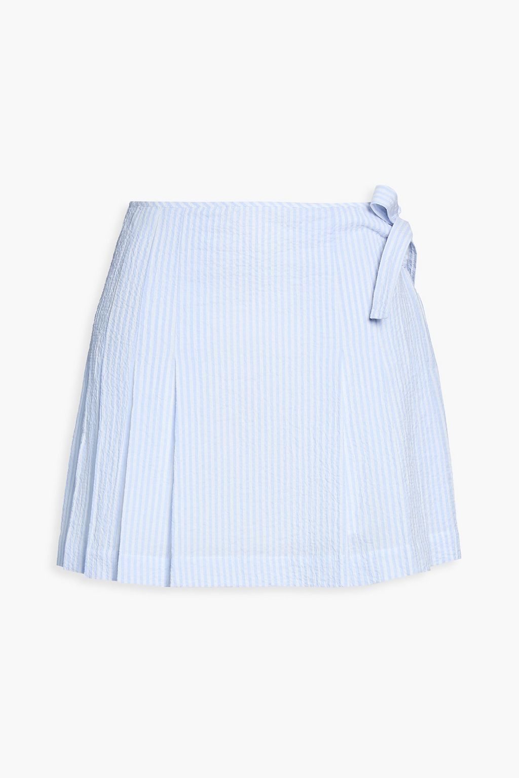SANDRO تنورة قصيرة من نسيج سيرساكر مصنوع من مزيج من القطن بتصميم مخطط مزينة بكسرات
