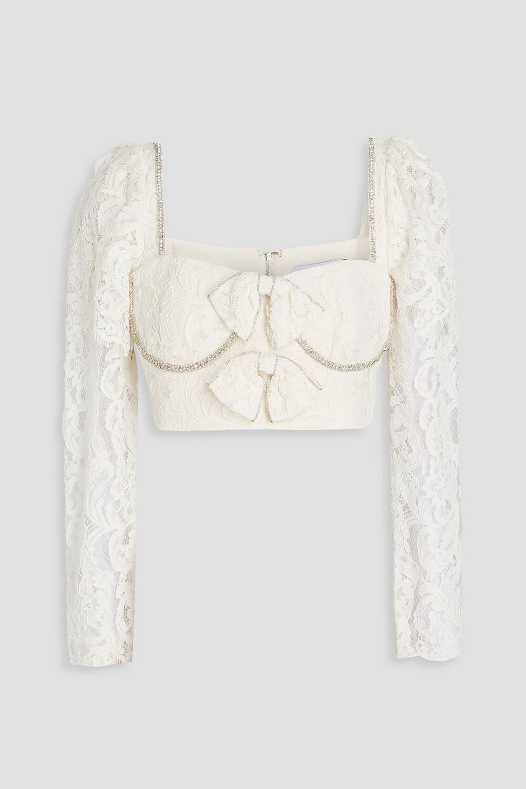 SELF-PORTRAIT بلوزة قصيرة من الدانتيل المفرّغ مزينة بربطة على شكل فراشة