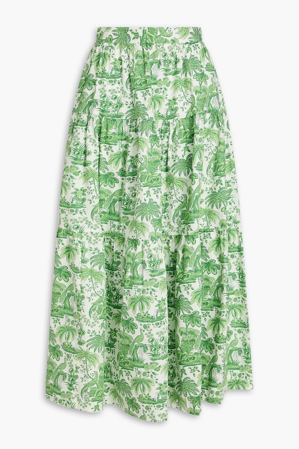 STAUD تنورة متوسطة الطول "سي" من القطن المطاط مزينة بطبعات وبطبقات متدرجة