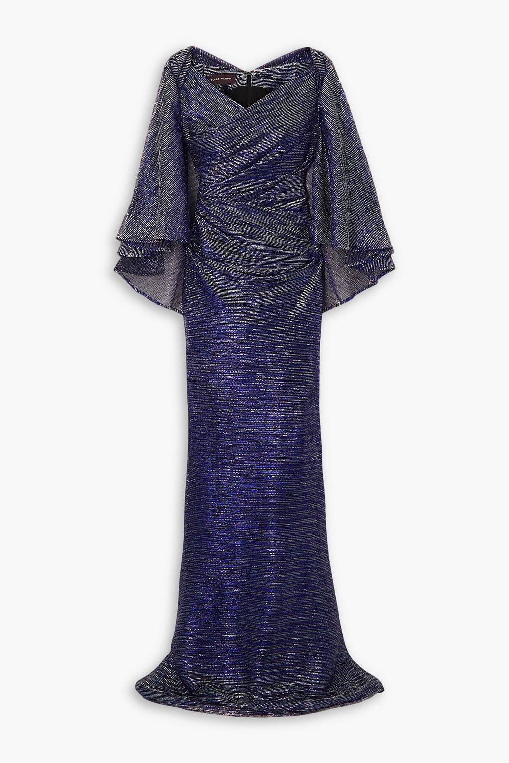 TALBOT RUNHOF فستان سهرة بتأثير الكاب من الفوال بلمعة معدنية