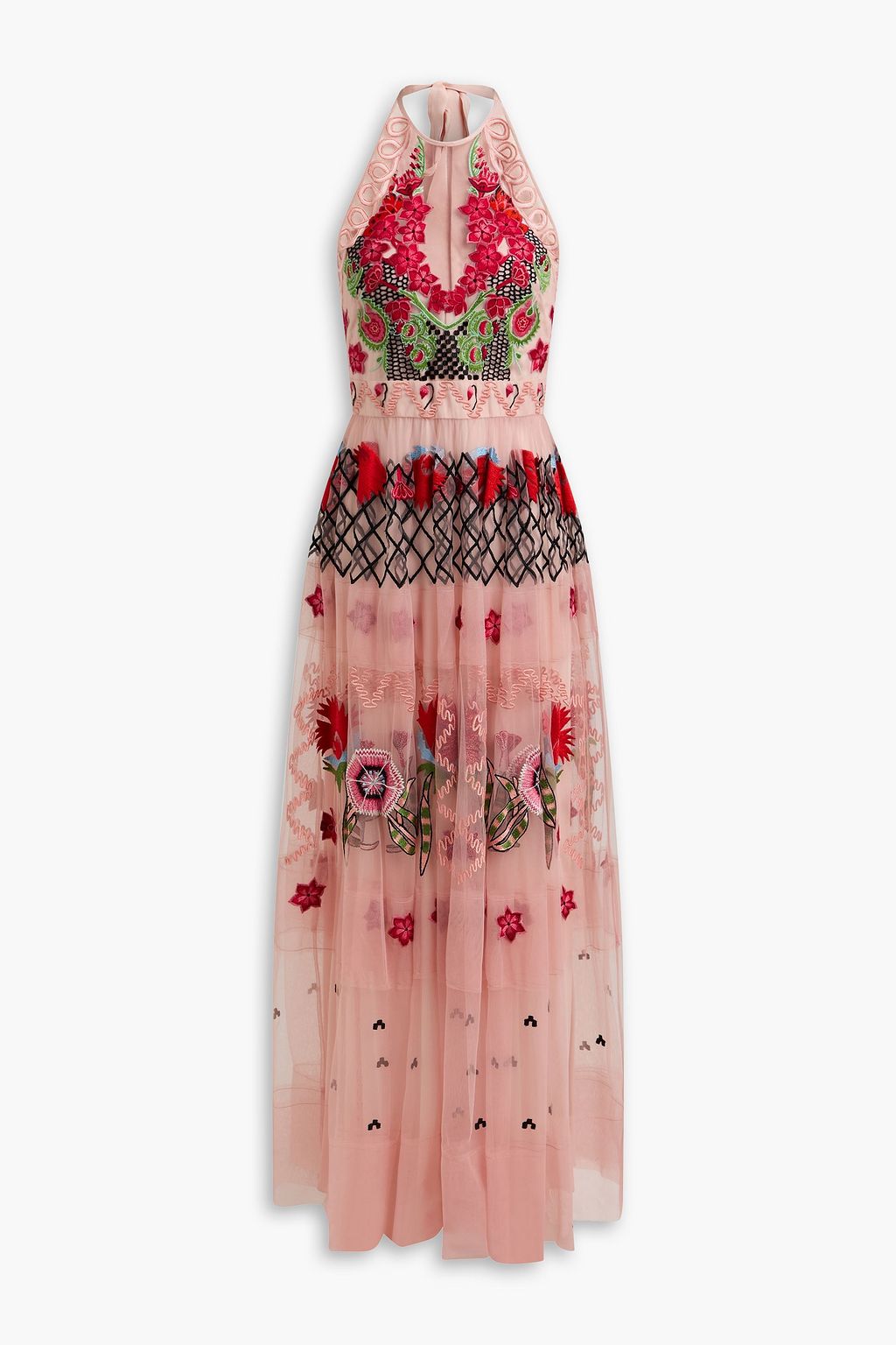 TEMPERLEY LONDON فستان طويل "ريمي" بياقة هالتر الدائرية مصنوع من التول بتصميم مزركش