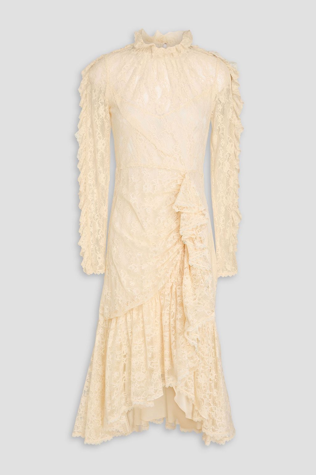 TEMPERLEY LONDON فستان متوسط الطول "أورلا" من الدانتيل النافر بتصميم مكشكش