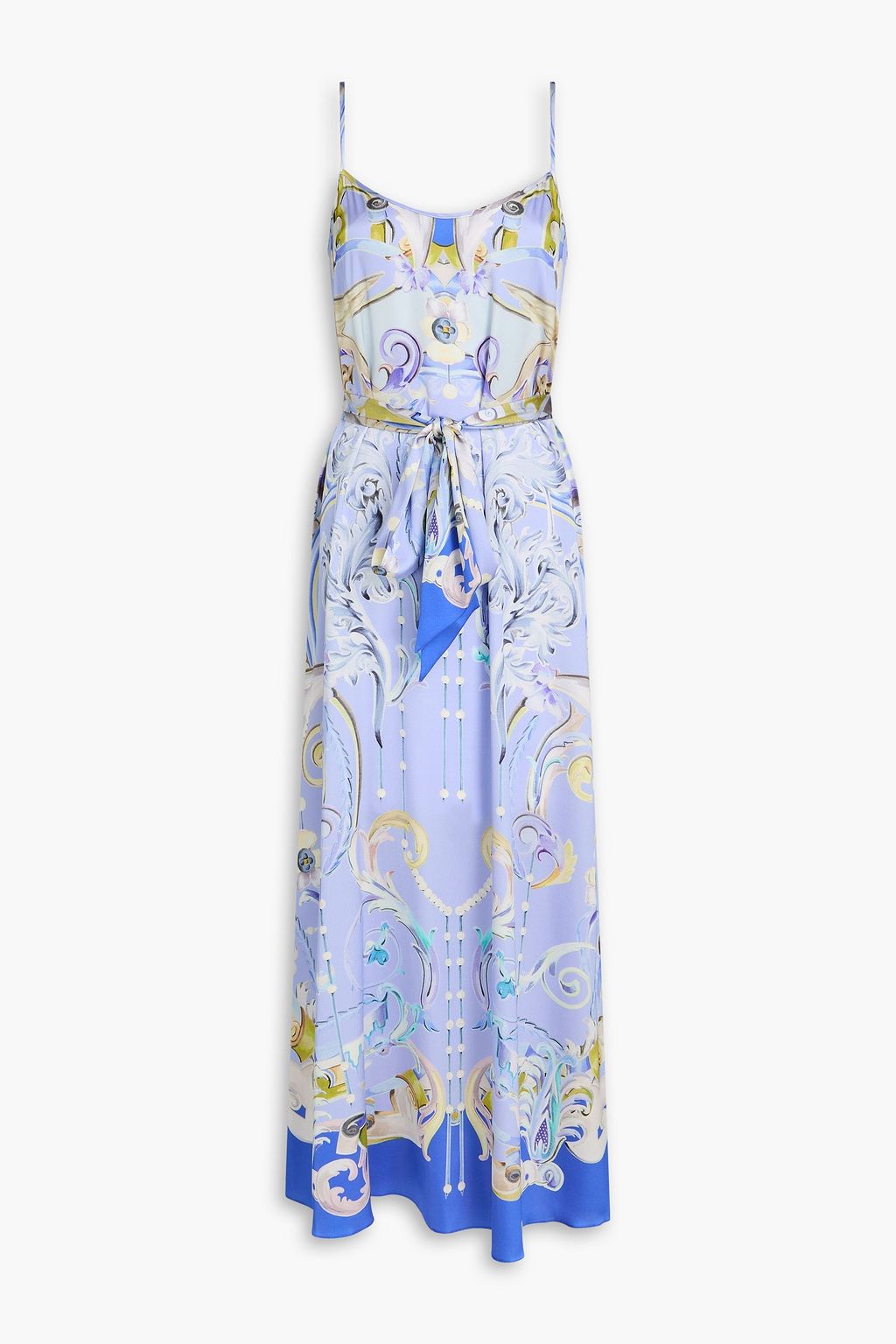 TEMPERLEY LONDON فستان متوسط الطول بتصميم سلوب من الساتان الحريري المرن ومزين بزخارف وبطبعة بيزلي