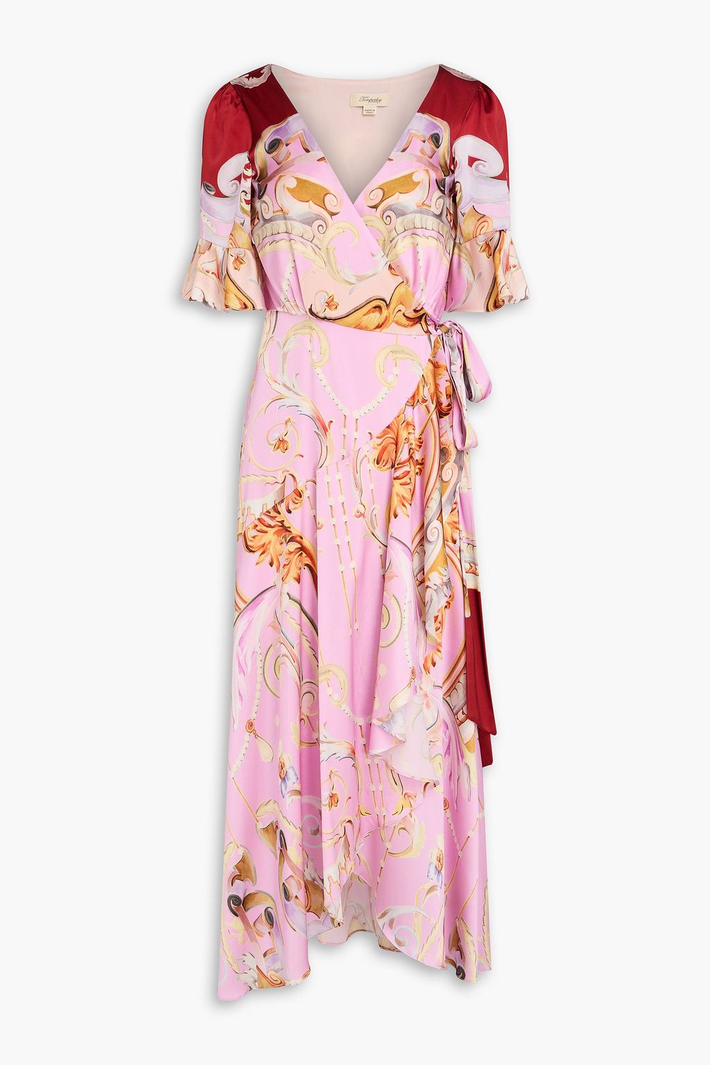 TEMPERLEY LONDON فستان ملتفّ متوسط الطول "كارلين" من الساتان الحريري المرن مطبّع برسومات
