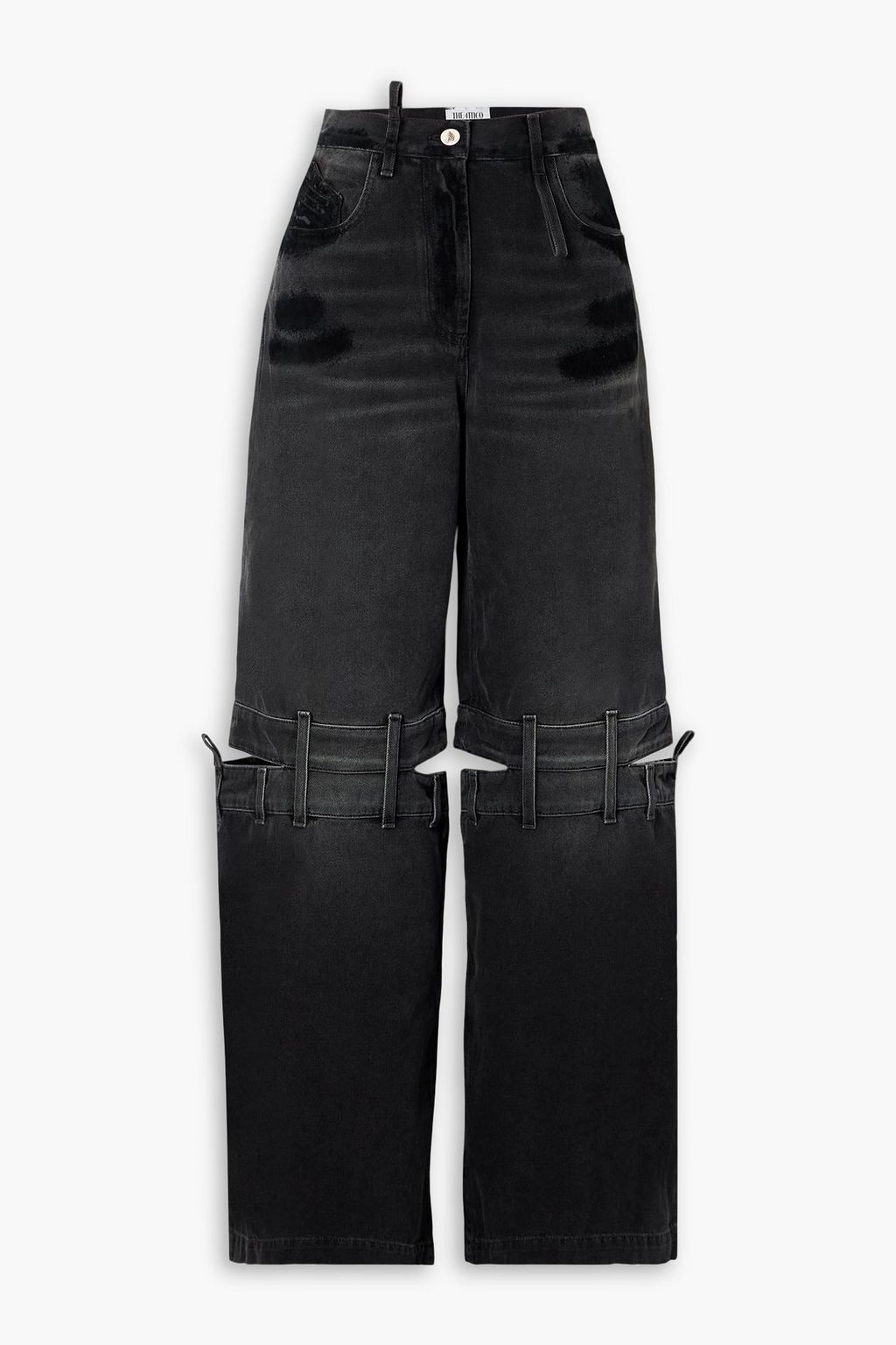THE ATTICO بنطال جينز بقصة أرجل واسعة وخصر مرتفع مزين بفتحات