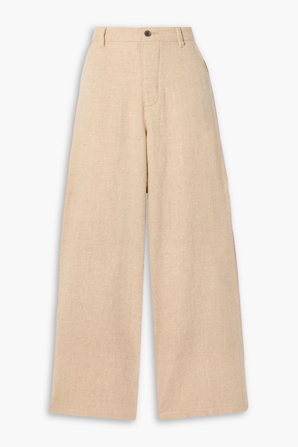 THE ELDER STATESMAN Linen, wool, silk and cashmere-blend wide-leg pants