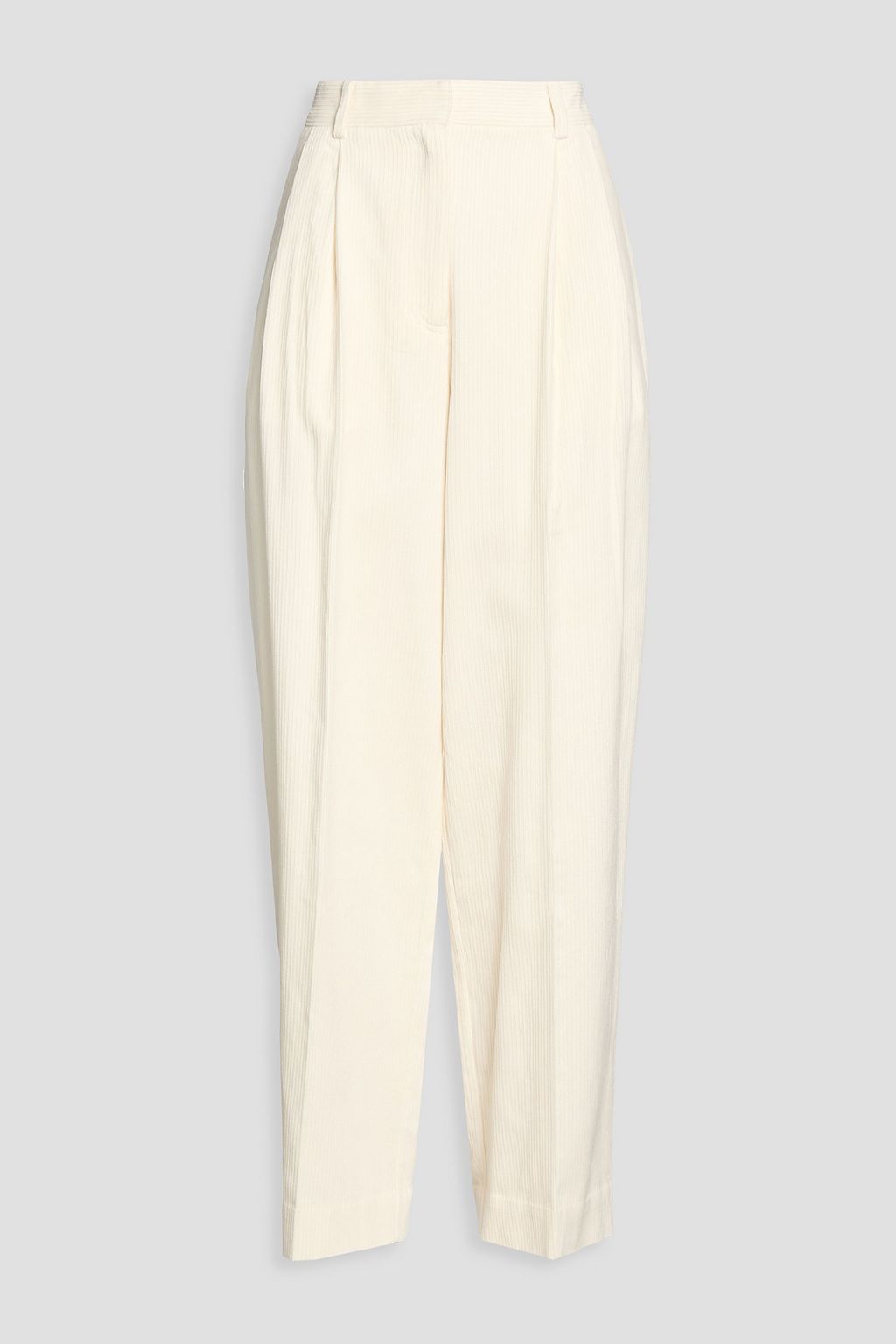 TOTEME بنطال بأرجل مستقيمة من المخمل المضلّع المصنوع من مزيج الحرير والقطن