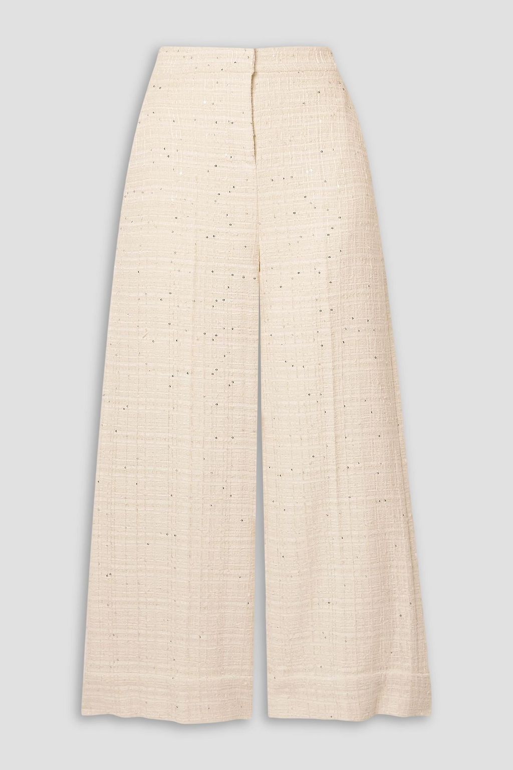 VALENTINO GARAVANI Embellished cotton-blend bouclé-tweed wide-leg pants