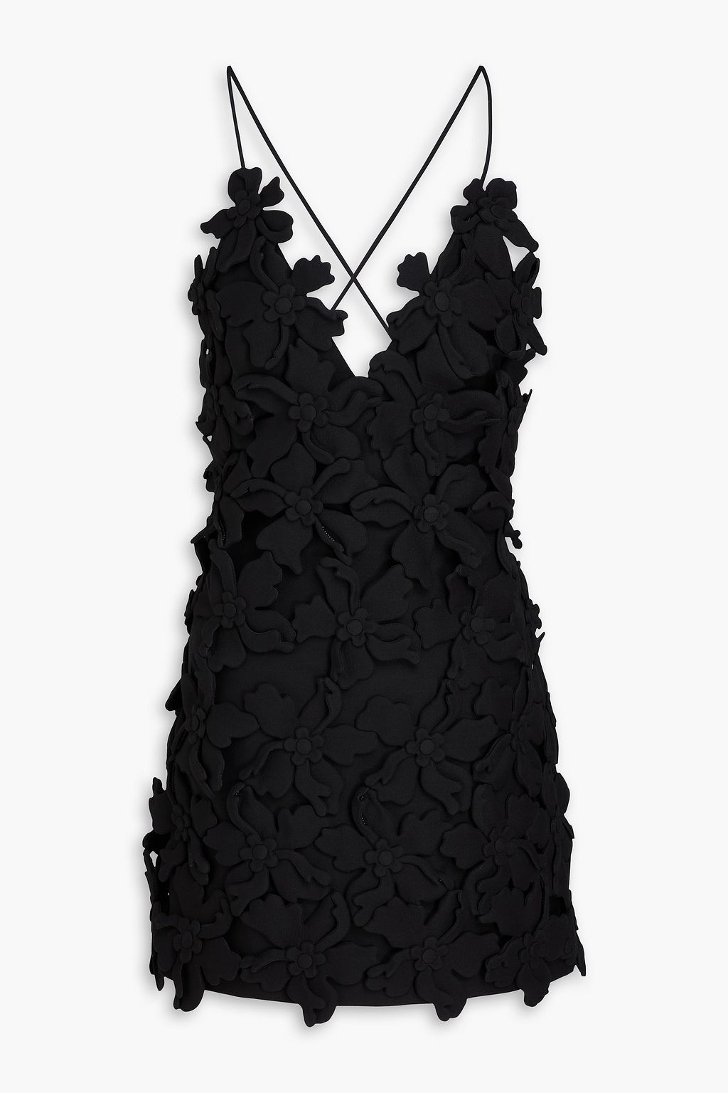 VALENTINO GARAVANI فستان قصير من الكريب ومزيج الحرير والصوف مُزيّن بزخارف الأزهار