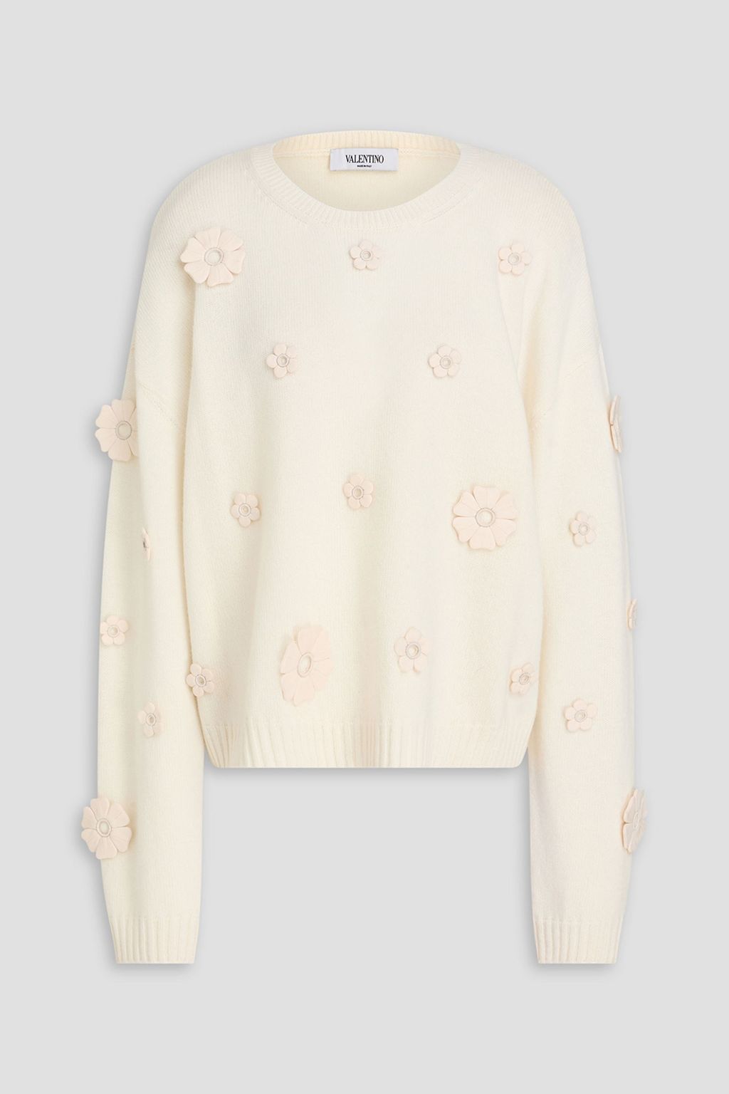 VALENTINO GARAVANI كنزة رياضية من مزيج الكشمير والصوف مُزيّنة بزخارف الأزهار