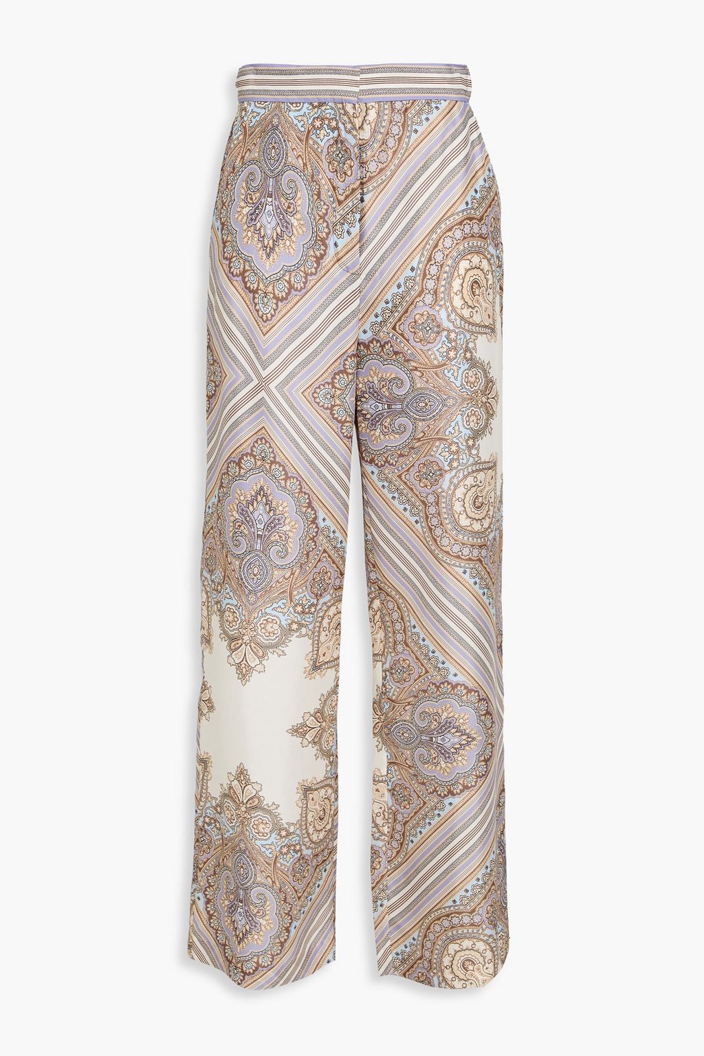 VERONICA BEARD بنطال "جريجوري" من الحرير بأرجل مستقيمة ومزين بطبعات
