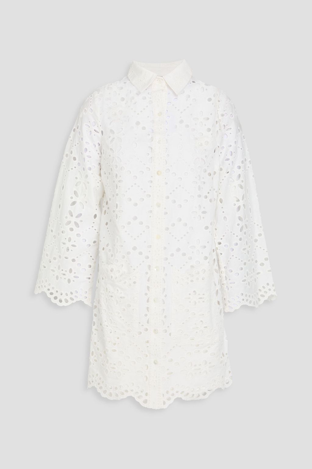 VERONICA BEARD فستان "سوماترا" قصير على شكل قميص من القطن بتطريز إنجليزي مخرم