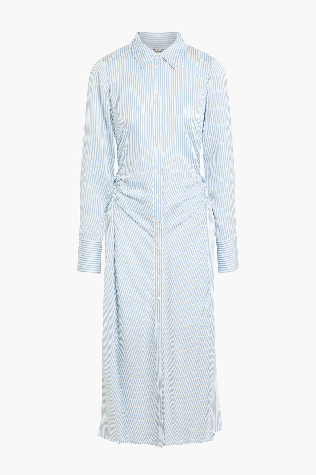 VERONICA BEARD فستان "ليكس" متوسط الطول بأسلوب القميص بتصميم مخطط من مزيج الحرير بتأثير مزموم