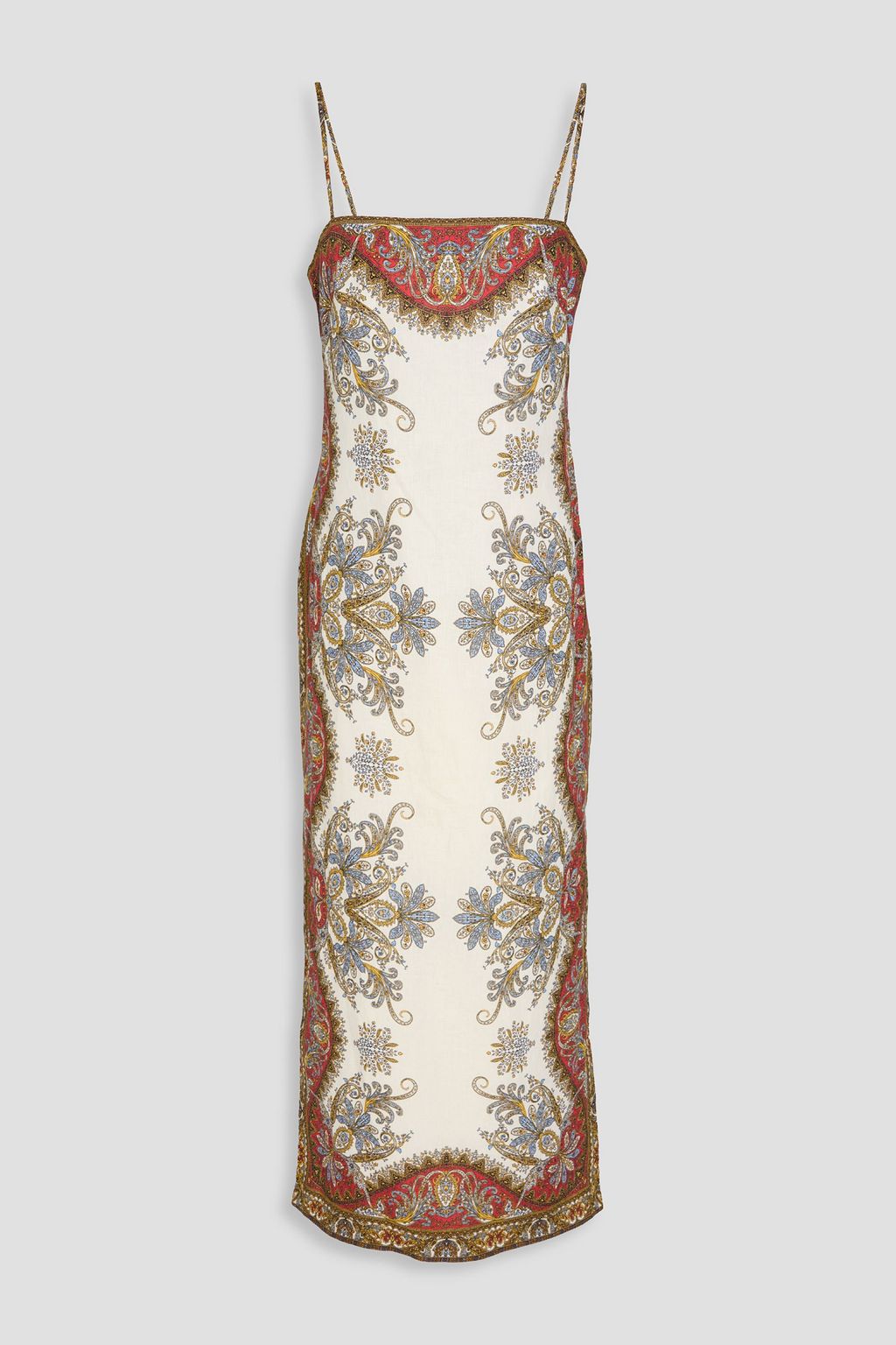 VERONICA BEARD فستان متوسط الطول "بيترا" من الكتّان مزين بطبعة بيزلي
