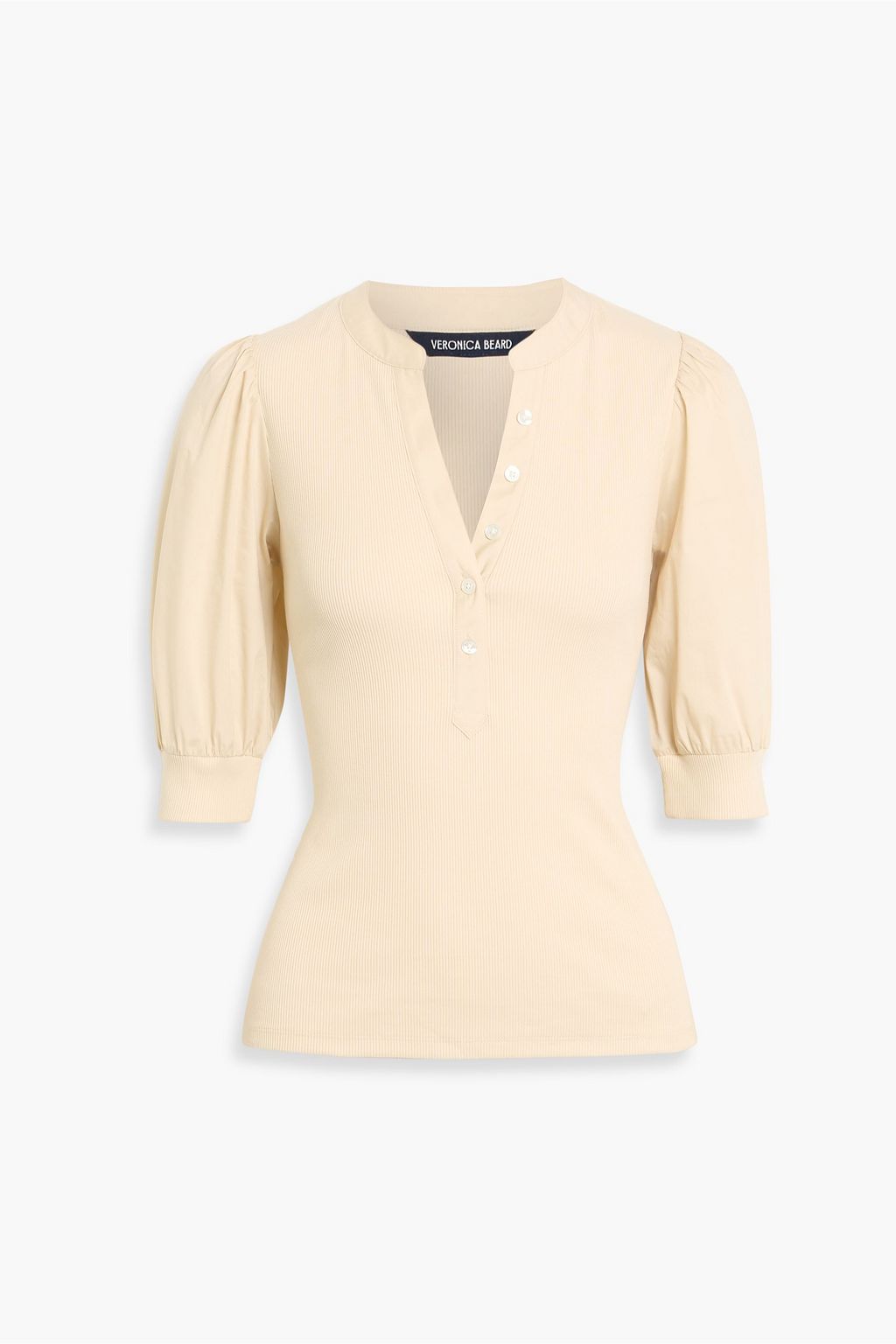 VERONICA BEARD بلوزة "كورالي" من مزيج قطن بيما المضلّع بقِطع محاكة بجانب بعضها البعض من البوبلين