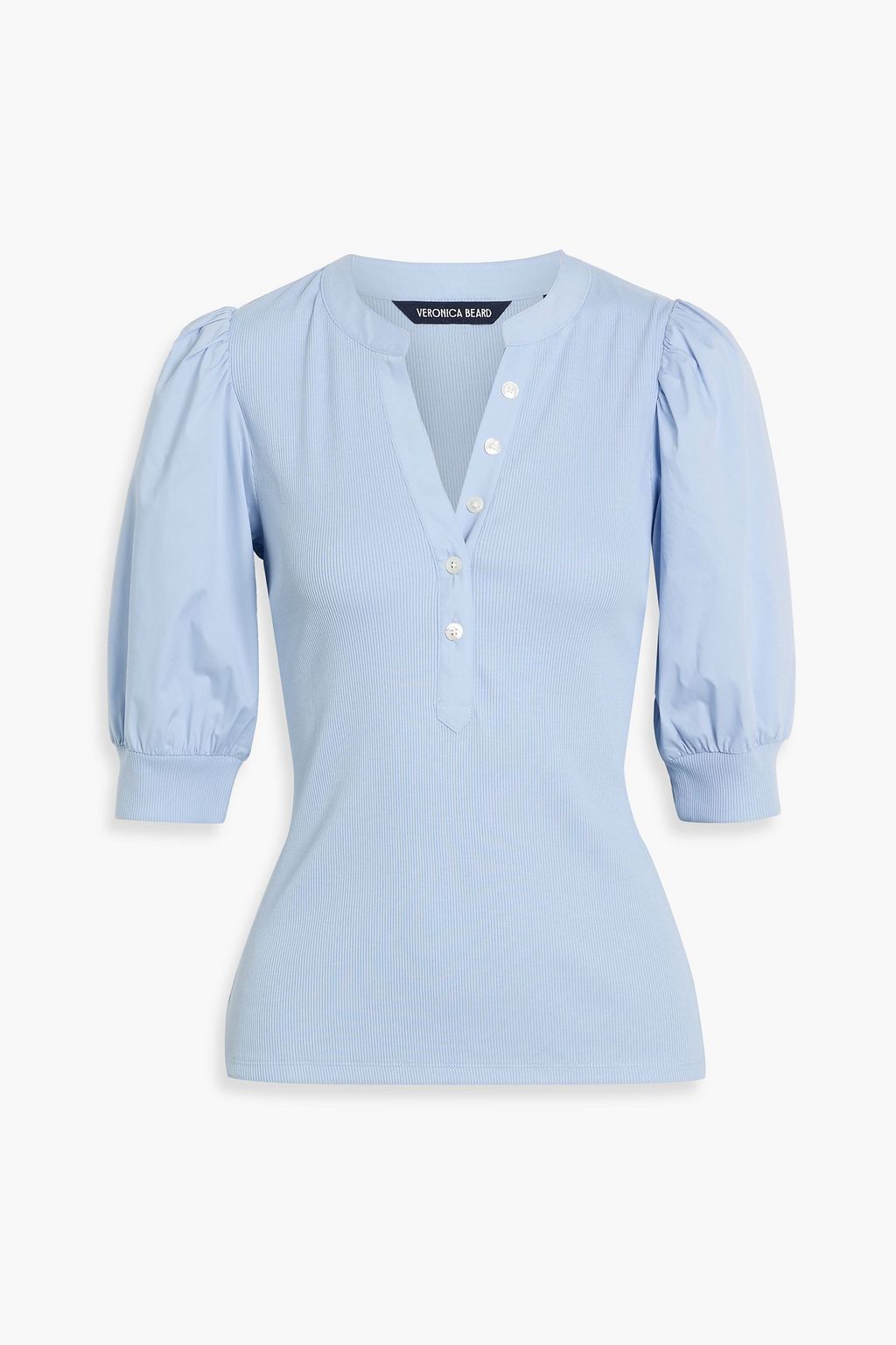 VERONICA BEARD بلوزة "كورالي" من مزيج قطن بيما المضلّع بقِطع محاكة بجانب بعضها البعض من البوبلين