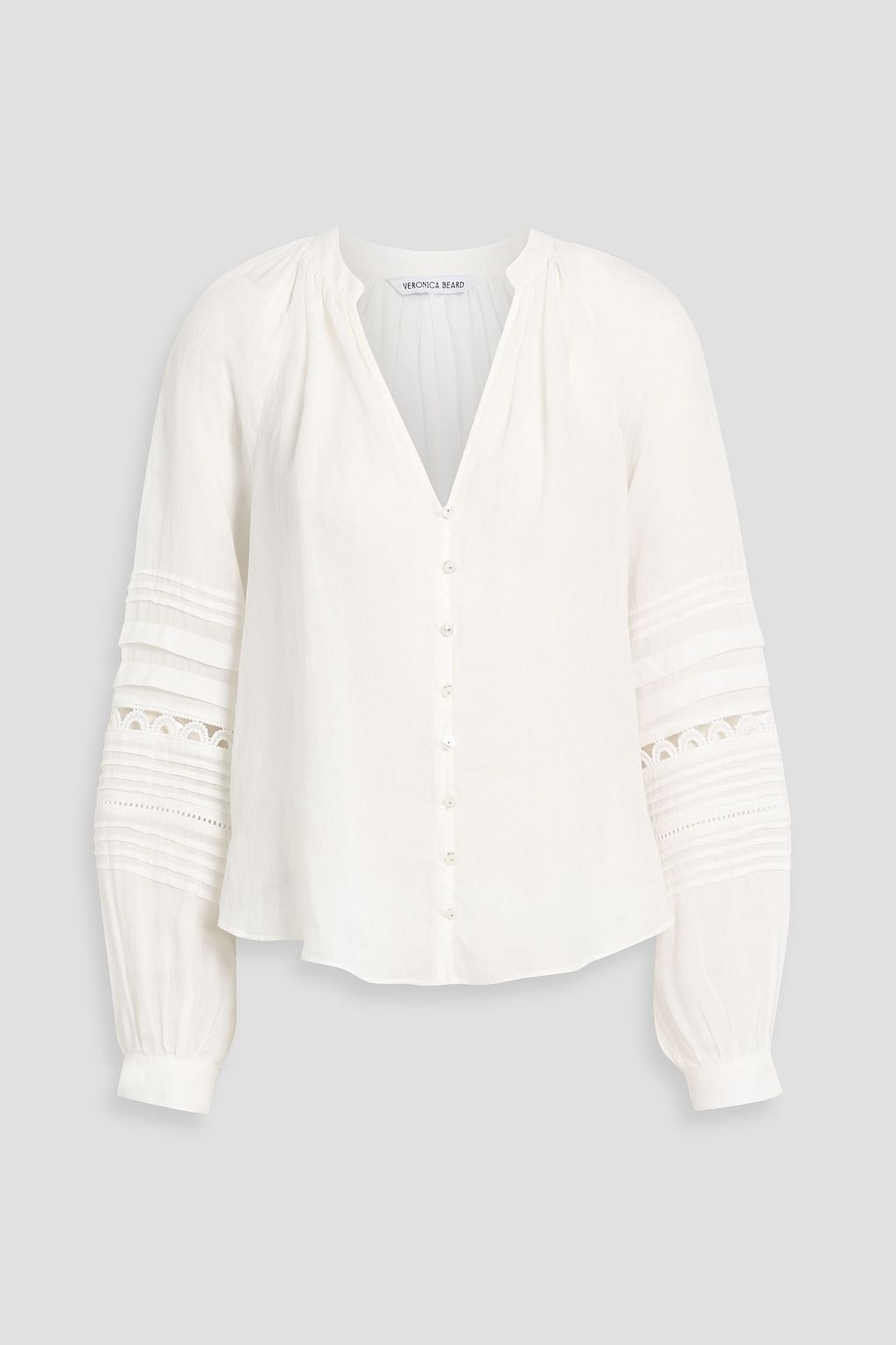 VERONICA BEARD بلوزة "أيلاني" من الفوال المصنوع من قماش راميه بثنيات رفيعة وحواف من الدانتيل