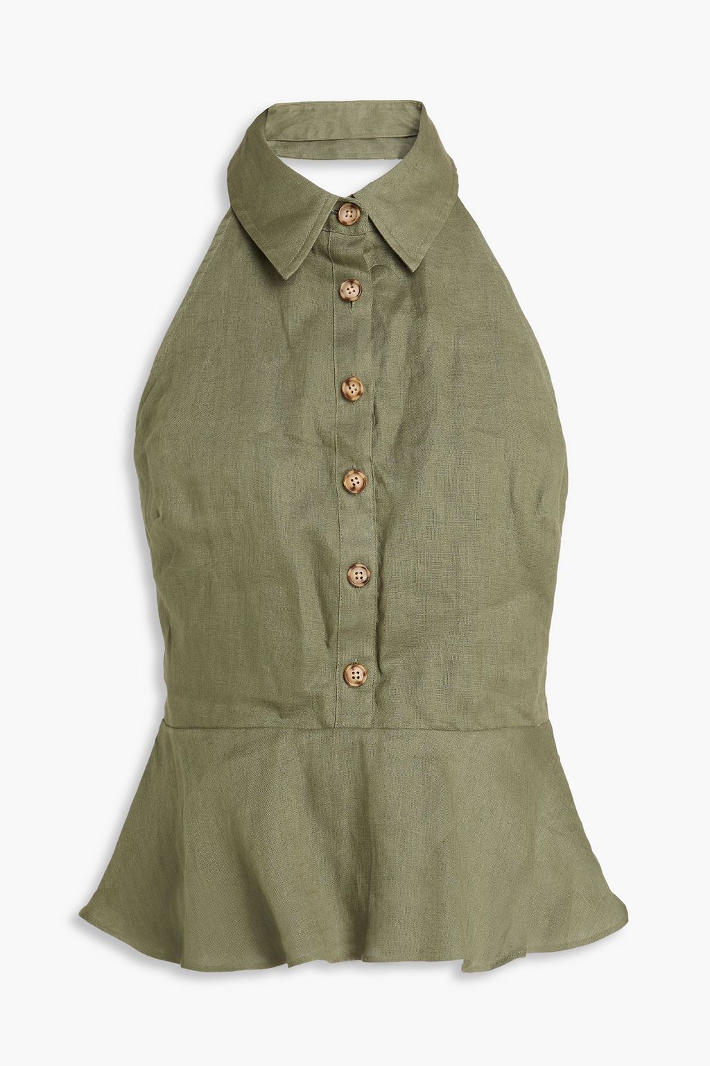 VERONICA BEARD بلوزة "لانكستر" من الكتان بكشكشة عند الخصر وياقة هالتر الدائرية