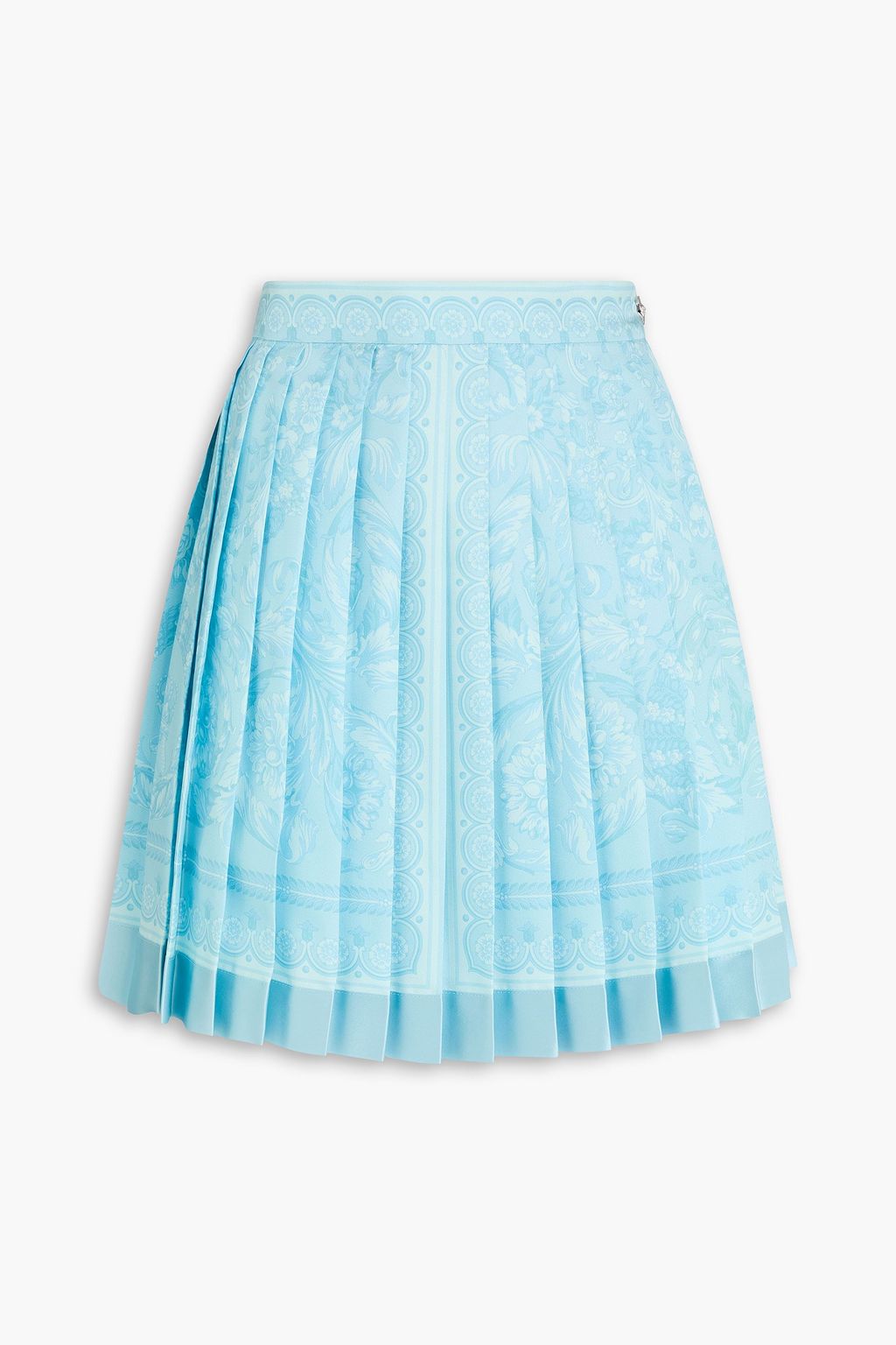 VERSACE تنورة قصيرة من التويل الحريري مزينة بطبعات على شكل زهور مع كسرات