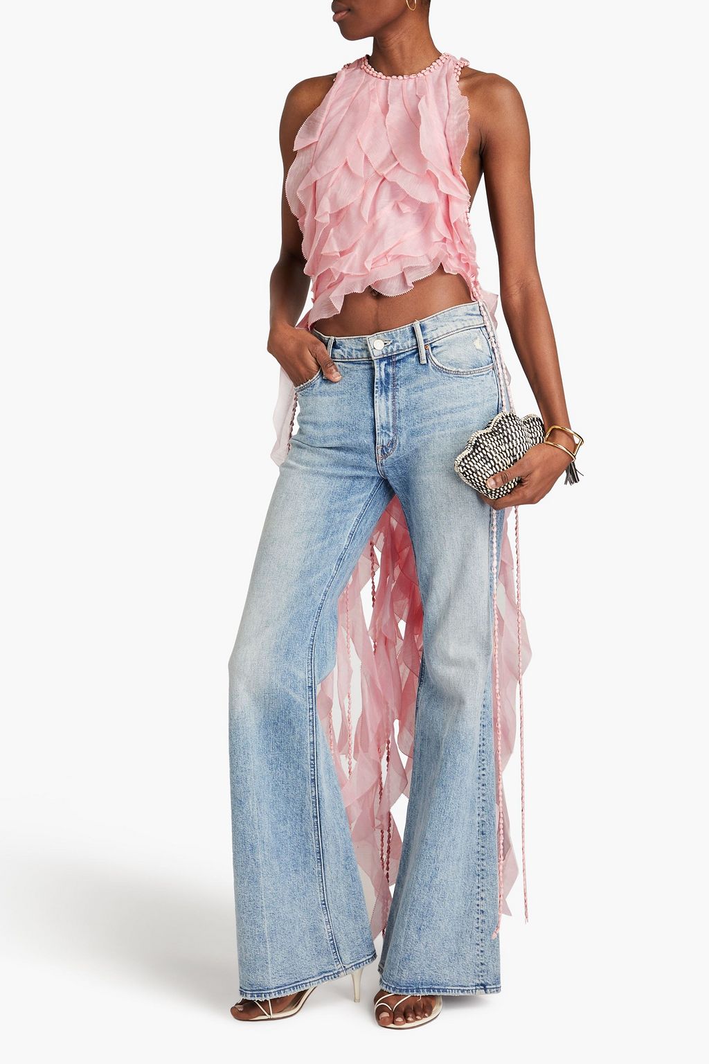 ZIMMERMANN بلوزة من قماش رقيق من مزيج الحرير والكتّان مزينة بكشاكش