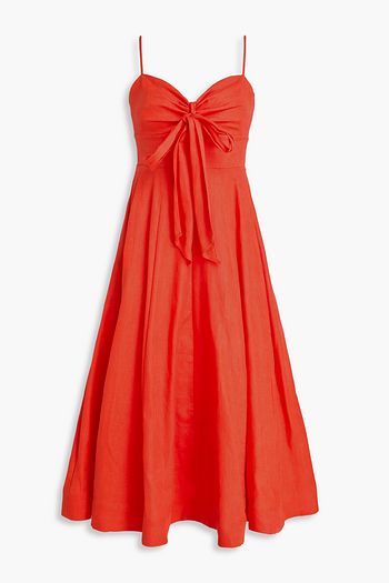 فستان متوسط الطول من الكتّان ومزين بطبعة الأزهار