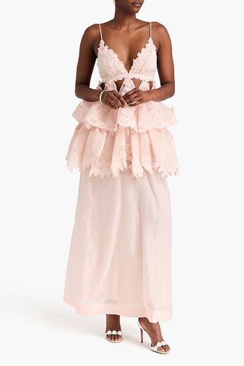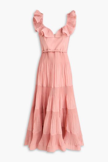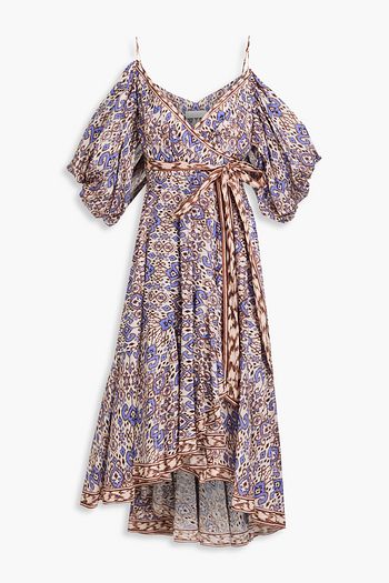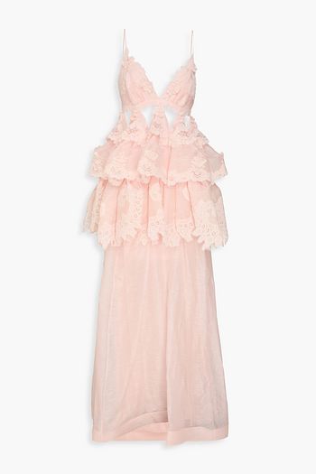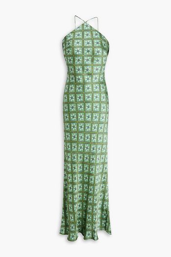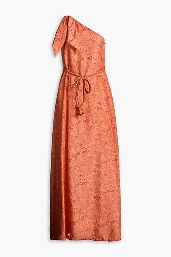 Tiered floral-print silk-voile gown