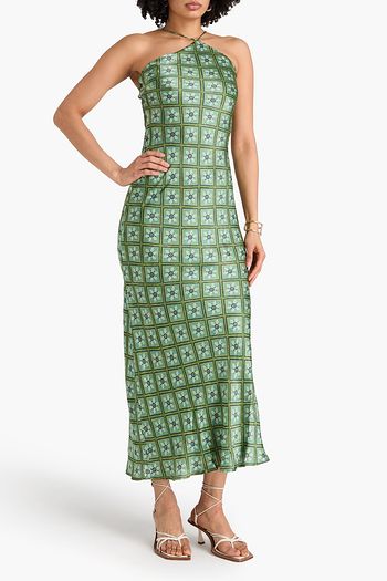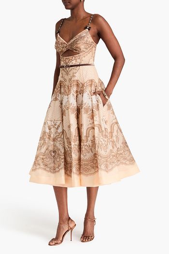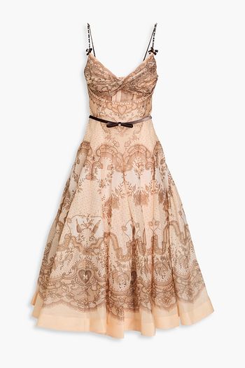 فستان متوسط الطول من الأورغنزا ومزيج الحرير والكتّان بطبعة الأزهار