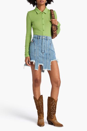تنورة طويلة "هيلا" من الدنيم بحواف منسّلة