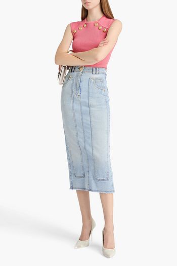 تنورة متوسطة الطول من الدنيم مزوّدة بحزام