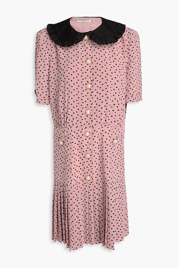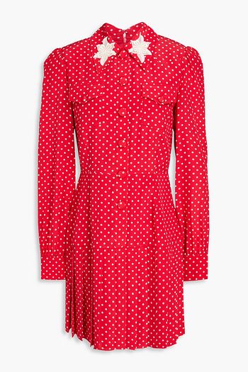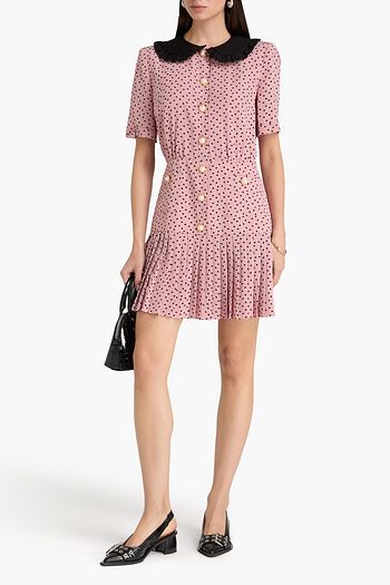 فستان قصير من قماش كريب دي شين بثنيات دقيقة وكسرات من الدانتيل