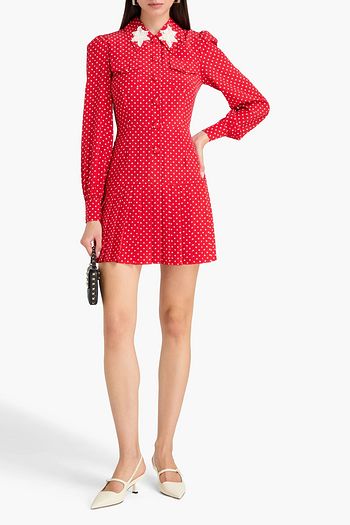 فستان قصير من الكريب المصنوع من مزيج الصوف مزيّن بحواف من الدانتيل وبأجزاء مقصوصة