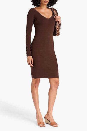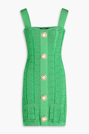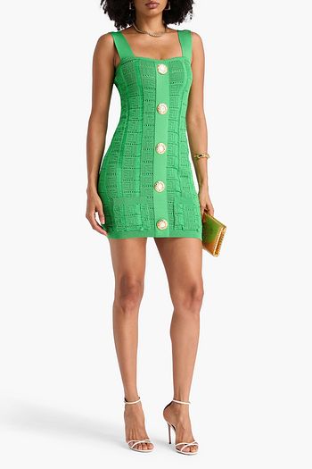 Wrap-effect jacqaurd-knit mini dress