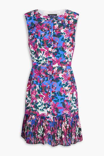 فستان قصير بثنيات رفيعة من الفوال مزين بكسرات رفيعة وبطبعة زهور